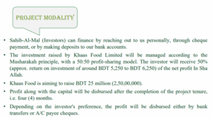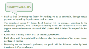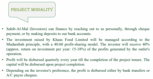 The investor will be provided a Formal Agreement, which explains the details of their investment and Khaas Food’s responsibility as Mudarib. The Sahib-Al-Mal (Investor) will also be provided a money receipt against his deposit amount.